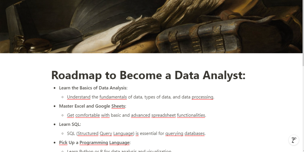 Roadmap to Becoming a Data Analyst in a forme of digital product
